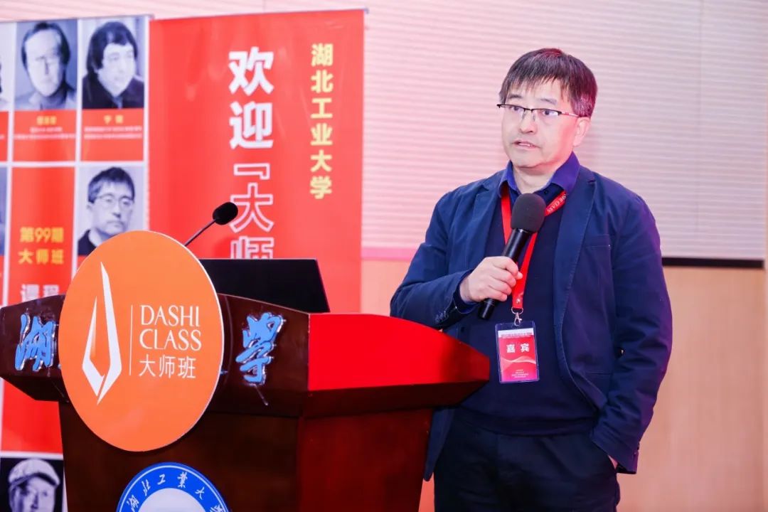 大师班课程导师代表,浙江大学博士生导师,湖北工业大学首届楚天学者孙守迁教授致辞。他肯定了大师班所坚持的正确方向,始终不断在往前走,创始人林家阳教授具有开放的格局和高度,设计要看到时代和技术的变化,设计在新的时代有新的动能,大师班办到第99期是非常关键的一期,希望100期更精彩。