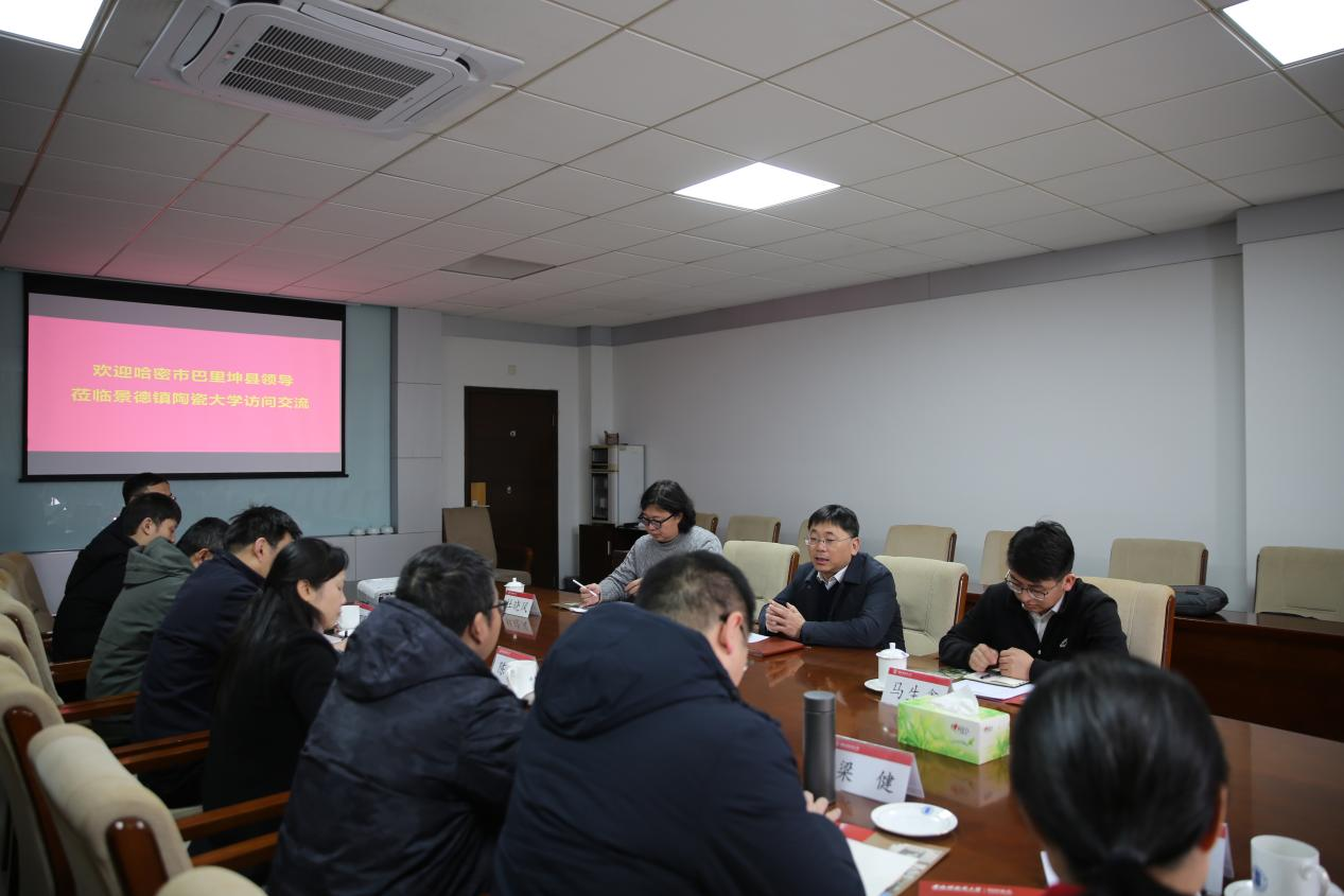 马向辉对我校教学、科研、人才培养等工作表示赞赏,并感谢陶瓷大学对巴里坤县陶瓷产业发展的支持。他表示,作为第八届China中国陶瓷艺术设计大赛的承办方之一,非常希望能够以大赛促文旅、以大赛促产业、以大赛促交流,本次专程来学校拜访,旨在寻求与陶瓷大学在全面战略合作机制、产学研融合、文化交流及人才培养等方面的深入合作,互通有无,以此推动巴里坤县陶瓷产业的高质量发展。