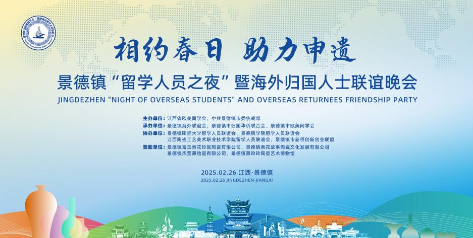 为深入学习贯彻党的二十大和二十届三中全会精神,践行习近平总书记的殷切嘱托,进一步发挥留学人员联谊会等组织的桥梁纽带作用,全面焕发陶瓷文化的魅力,谱写留学报国的崭新篇章,景德镇市委统战部于2025年2月26日隆重举办了2025景德镇“留学人员之夜”暨海外归国人士“相约春日·助力申遗”联谊晚会活动。此次活动旨在团结、服务、引导留学归国人员及全市海外归国人士,为擦亮千年瓷都这张亮丽名片贡献积极力量。