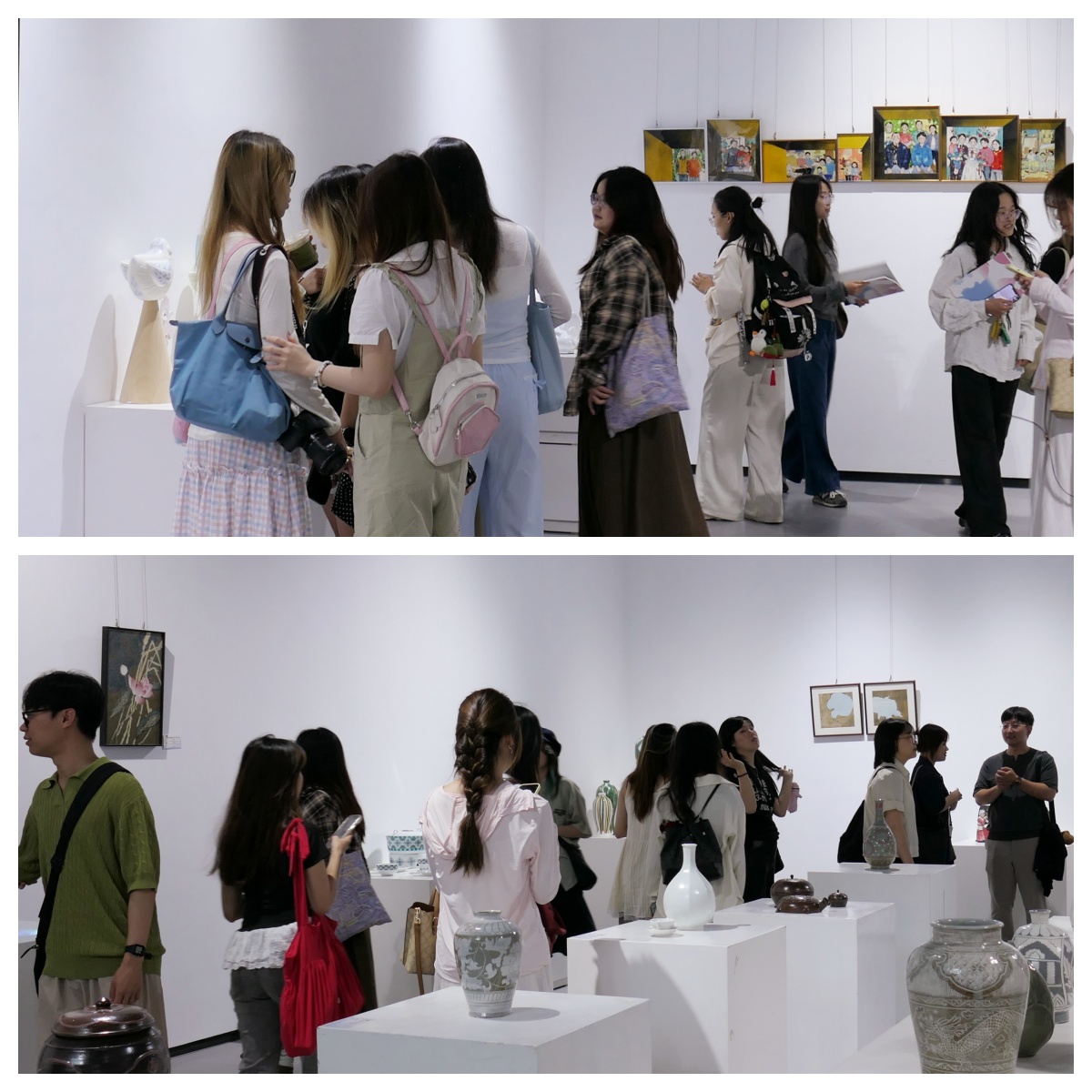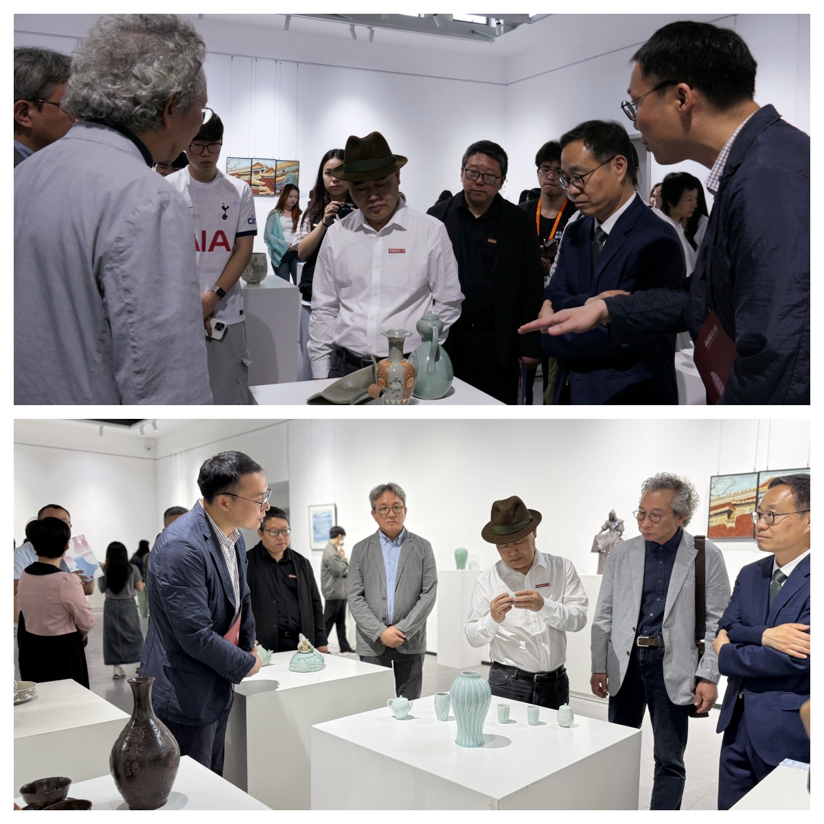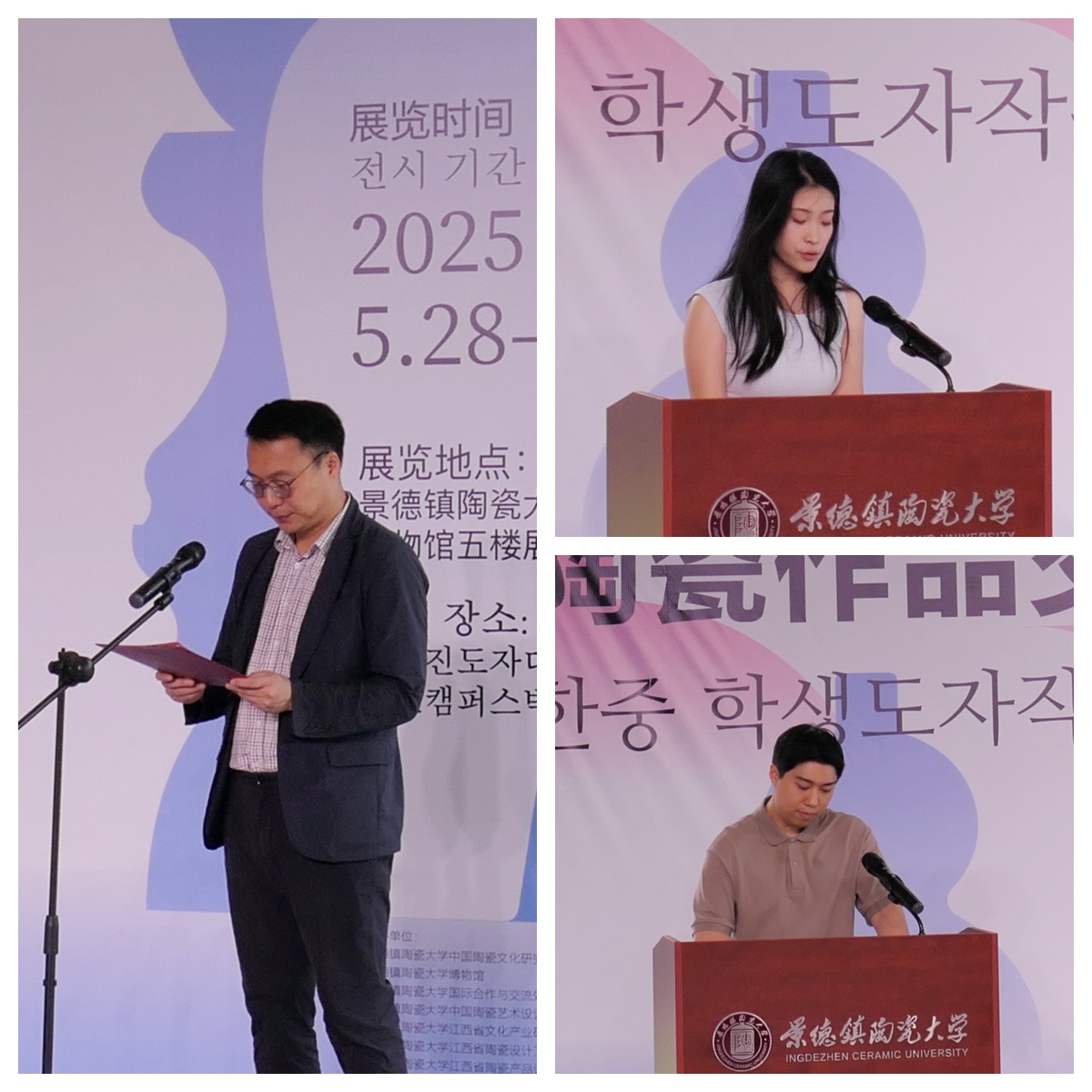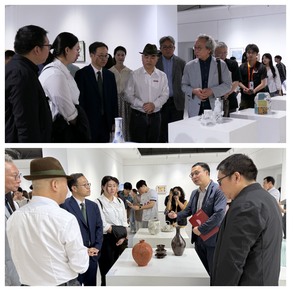 景德镇陶瓷大学参展学生代表王恒和韩国传统文化大学参展学生代表李文炫分别就参展感悟分享了自身体会。开幕式结束后嘉宾一行前往展厅参观并合影留念。