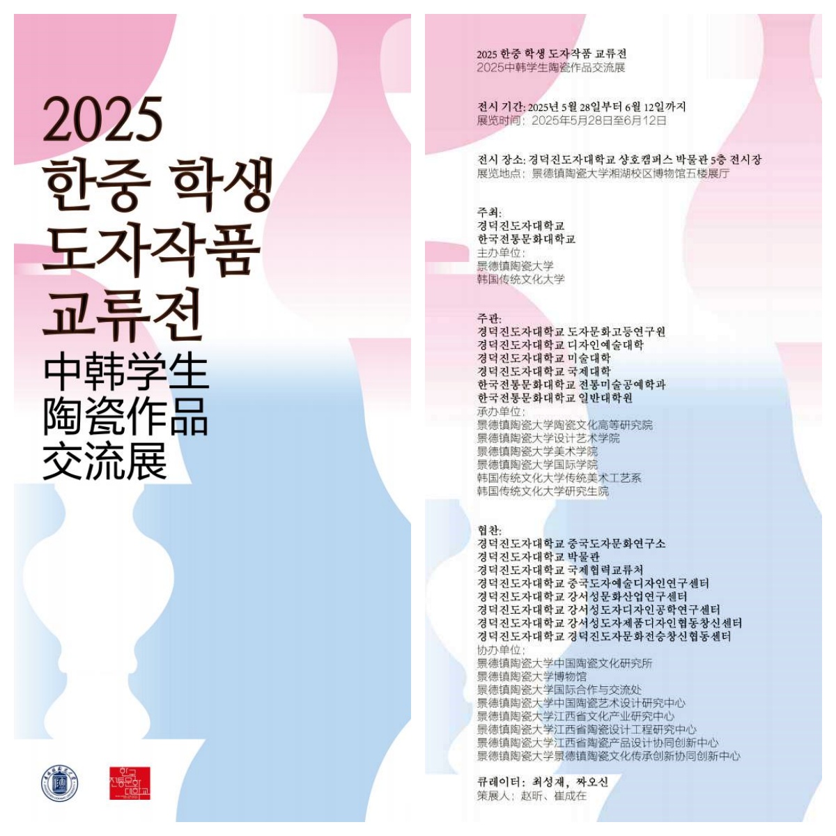 据悉,本次陶瓷作品交流展览由我所赵昕副教授与韩国传统文化大学崔成在教授共同策划。作品类别涵盖现代陶艺、陶瓷雕塑、陶瓷绘画、日用陶瓷等,共计76件作品入选了本次展览。该展览得到两校相关专业学生的热烈响应,展览时间为2025年5月28日至6月12日。