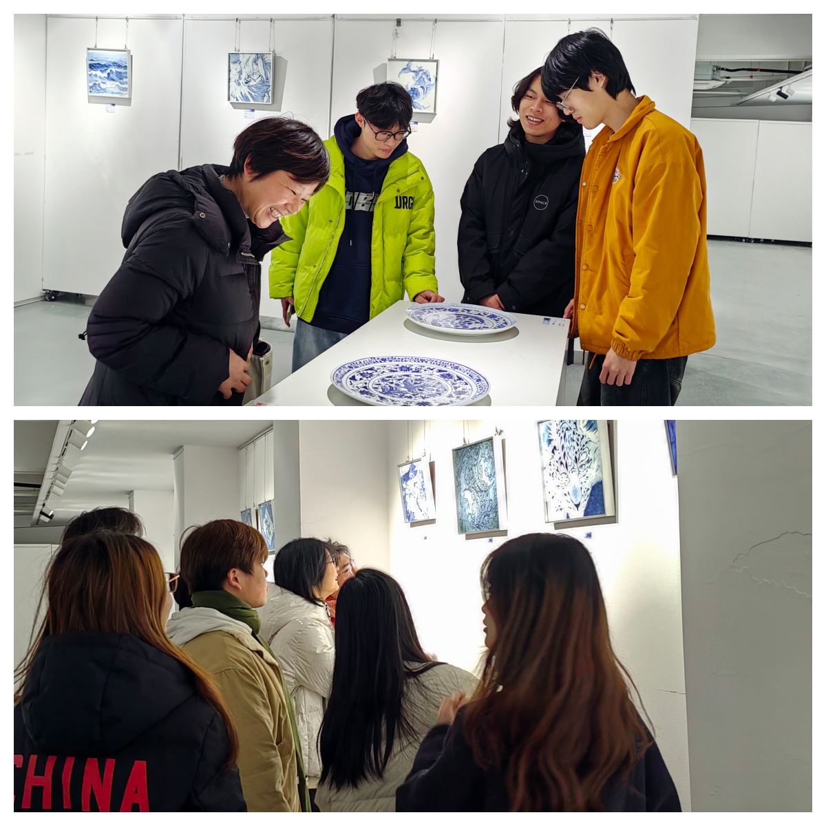 此次课业成果汇报展在绘画与书法系与中国陶瓷文化研究所的共同努力下为学生们搭建了作品展示的平台,提供了宝贵的学术交流机会,更为陶瓷绘画专业的发展注入了蓬勃生机。展览期间,众多专家学者与在校学子前来参观,纷纷给予肯定与赞扬,并提出了诸多宝贵的意见和建议。通过青花基础课程的学习,同学们从最初“只知其美”的门外汉,逐步走进了这门传统工艺的瑰丽世界。这份青白相映的东方美学,将成为学子们持续探索的动力。未来,我们将以中国陶瓷文化为根基,用更自由灵动的笔触挖掘青花材料的更多可能,凭借更深厚的学术研究功底与创新精神,抒发对现代青花创作的独到见解,为陶瓷绘画专业的发展续写精彩篇章。